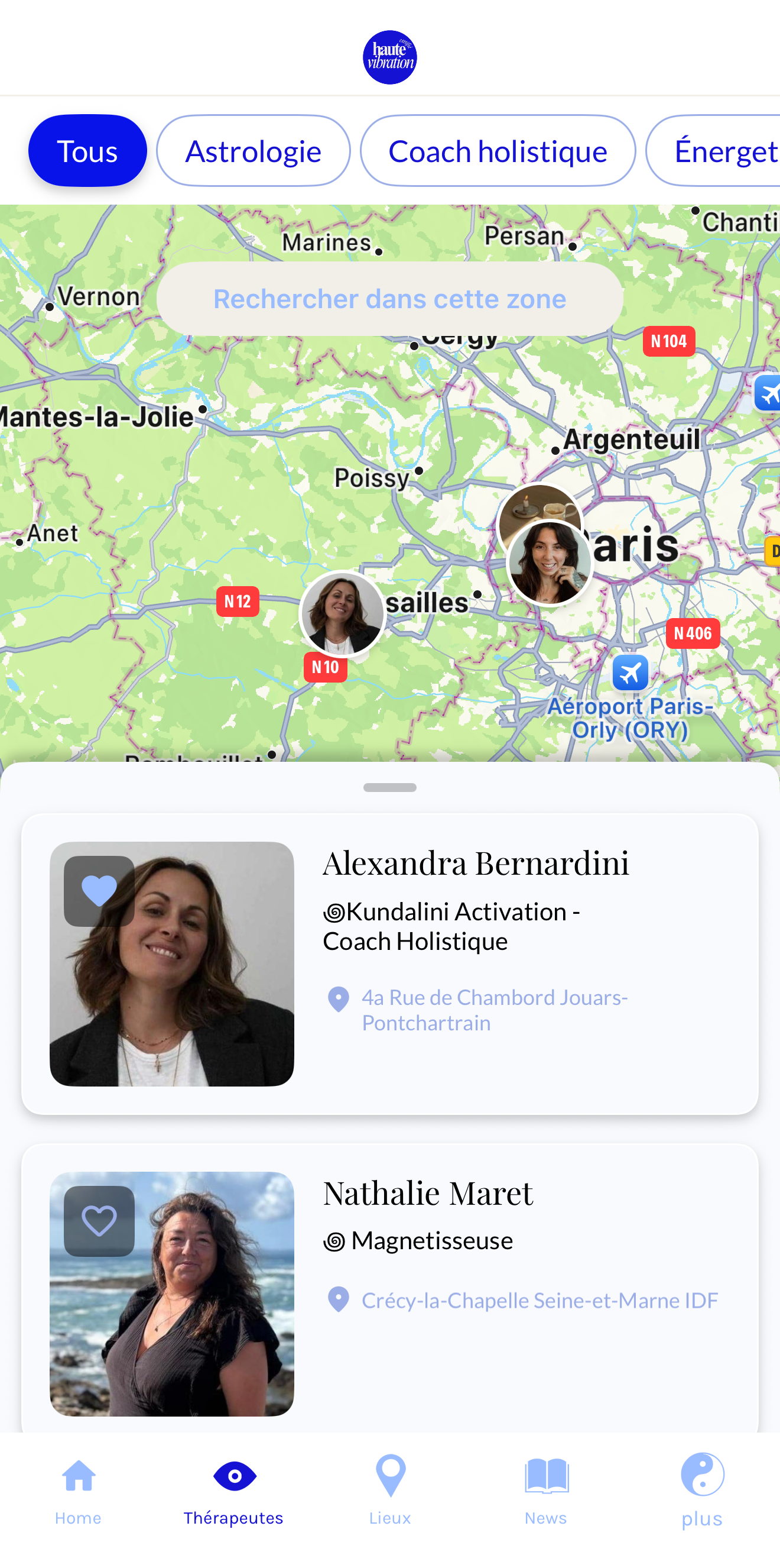 Haute Vibration, une application qui permet de trouver des thérapeutes, des lieux, des formations et des expériences énergétiques de confiance, autour de chez soi ou à distance.